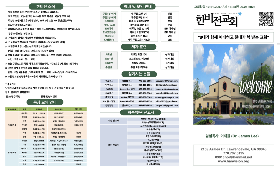 9월 21일 주보 Publish on September 21,2025 | 한비전교회 216 페이지 정보 작성자 한비전교회 댓글 0건 조회 216회 작성일 25-09-21 16:13 목록 본문 교회주보 이전글9월 28일 교회주보 25.09.27 다음글9월 14일 주보 25.09.14 댓글 0 댓글목록 등록된 댓글이 없습니다. 목록
