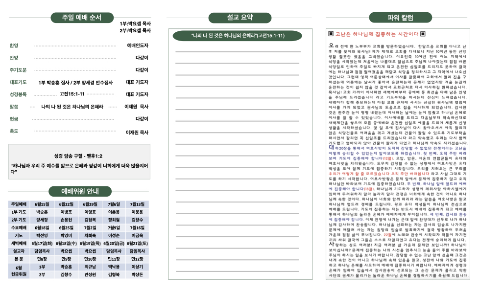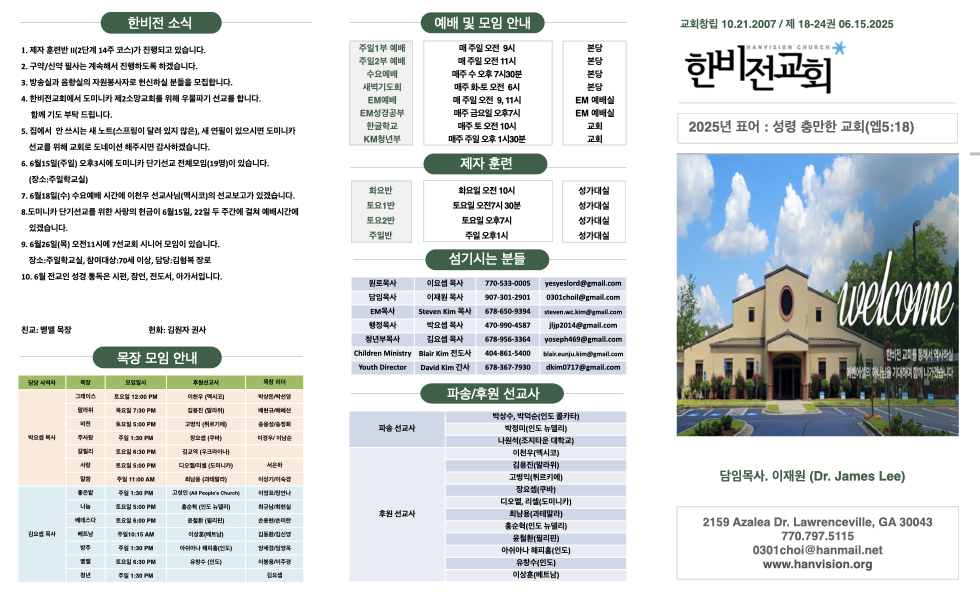 4월 15일 주보 Publish on June 14,2025 | 한비전교회 662 페이지 정보 작성자 한비전교회 댓글 0건 조회 662회 작성일 25-06-14 13:29 목록 본문 교회 주보 이전글6월22일 주보 25.06.21 다음글6월 8일 주보 25.06.07 댓글 0 댓글목록 등록된 댓글이 없습니다. 목록