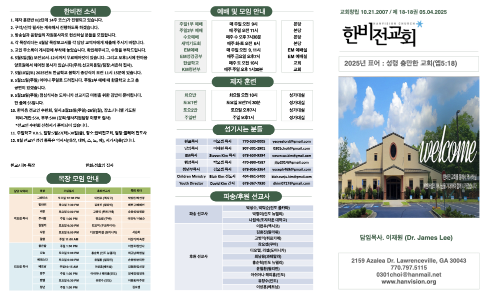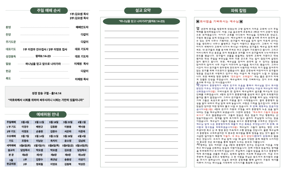 5월 4일 주보 Publish on May 03,2025 | 한비전교회 715 페이지 정보 작성자 한비전교회 댓글 0건 조회 715회 작성일 25-05-03 19:48 목록 본문 교회 주보 이전글5월 11일 주보 25.05.10 다음글4월 27일 주보 25.04.26 댓글 0 댓글목록 등록된 댓글이 없습니다. 목록