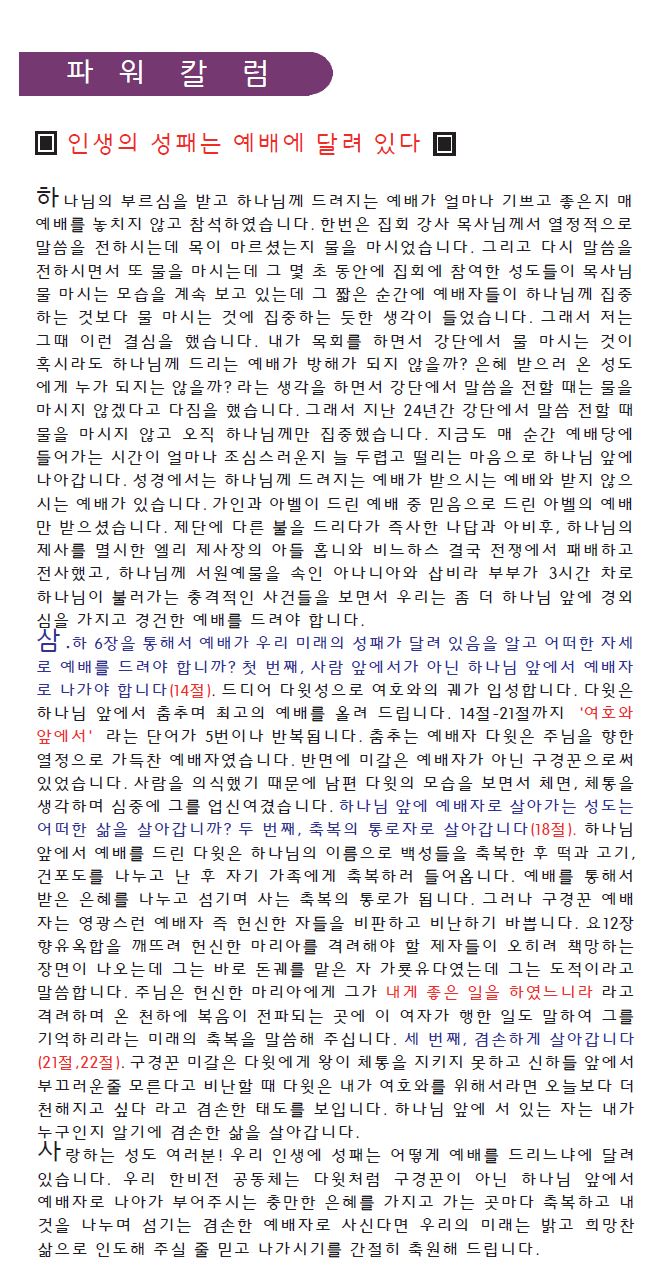 "인생의 성패는 예배에 달려 있다" (3/26/2025) > 파워칼럼