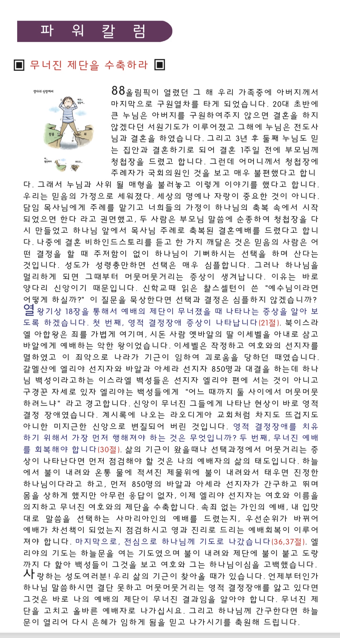 파워칼럼 "무너진 제단을 수축하라" (8/14/2024) Publish on August 14,2024 | 한비전교회 페이지 정보 작성자 한비전교회 댓글 0건 조회 2,405회 작성일 24-08-14 07:21 목록 본문 한비전 교회 - 이재원 목사 이전글"두려워 하지 말고 믿기만 하라" (8/22/2024) 24.08.22 다음글"부족함이 내게 능력이다" (8/8/24) 24.08.08 댓글 0 댓글목록 등록된 댓글이 없습니다. 목록
