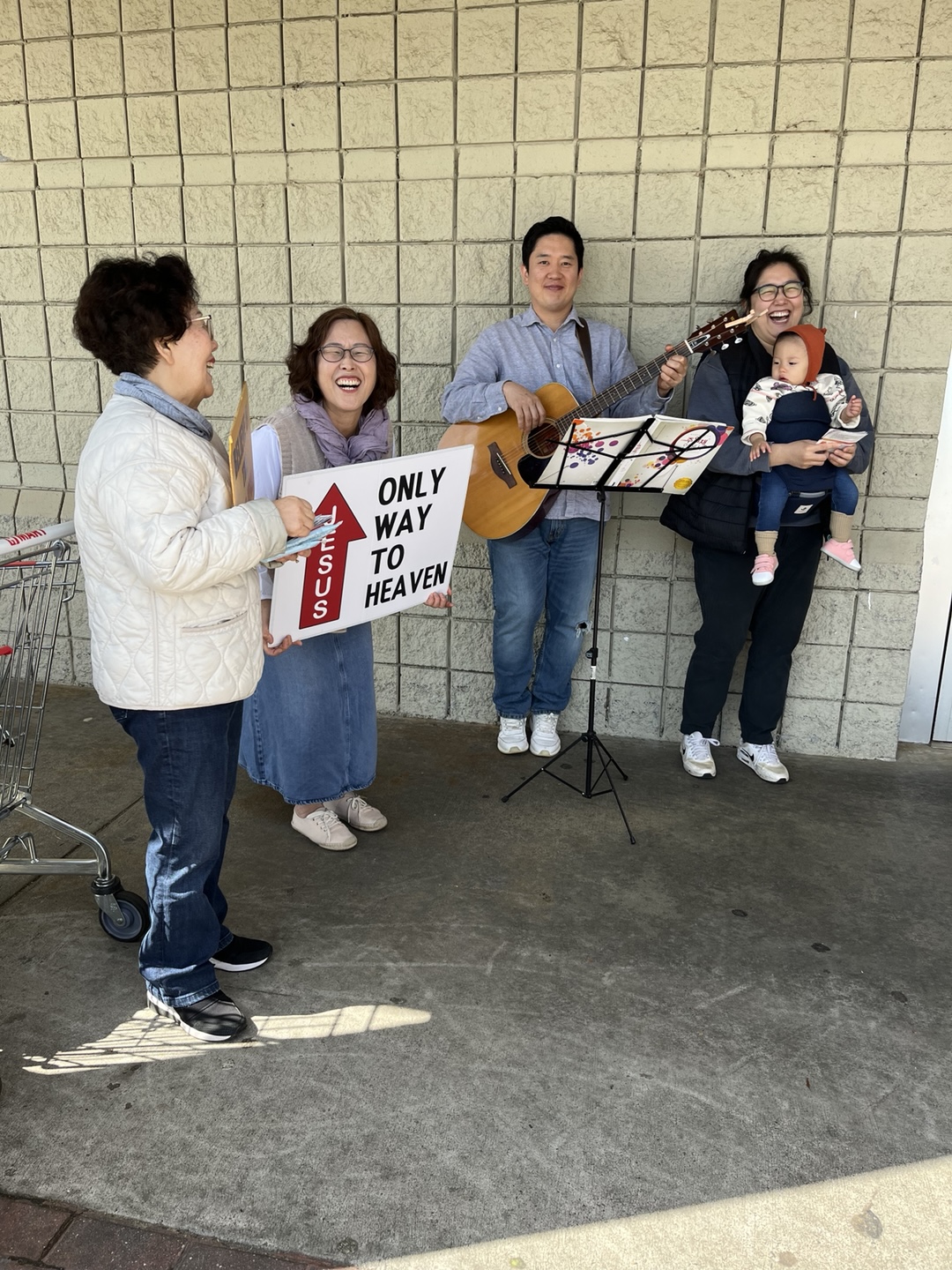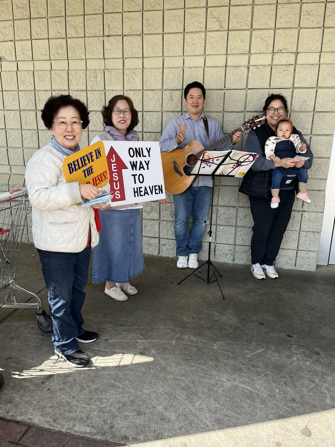 토요제자반 이효재, 신예지 부부와 예쁜 딸 지효까지 가족전체가 전도팀에 합류한 기쁜 날 이였습니다. 기타반주와 복음열정의 찬양과 전도지 배포로 많은 영혼들을 깨웠을 줄 믿습니다. 또한 전도 후 맛있는 식사로 섬겨 주셨습니다. 서랑합니다